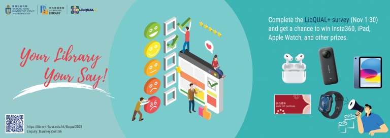 As part of our continuing efforts to provide service excellence to the University community, the Library is conducting a Services Quality Survey among current students, faculty and staff in Fall 2023. ITSC authentication is required to enter the questionnaire, but your responses will remain anonymous. All personal data collected will be handled in compliance with the Library’s Privacy Policy.
