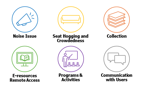• Please do something to divide the library into a quiet part and a discussion part and reduce the noise in the quiet part. Because I always see students talking and discussing in the library. I think discussion is vital for our study, but making a lot of noise in the library may sometimes annoy others.