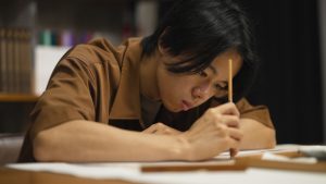 Shum Kwan Yi, Sim graduated with a Master of Philosophy (MPhil) and Bachelor of Arts (BA) from the Department of Visual Arts at Hong Kong Baptist University, and completed a semester exchange at Nagoya Zokei University of Art & Design, Japan. Shum’s practice focuses on ink art, through which she explores the contemporary relevance of traditional landscape painting, transforming it into a symbolic language. Her works weave together personal and collective social narratives, addressing themes of societal constraint and displacement.