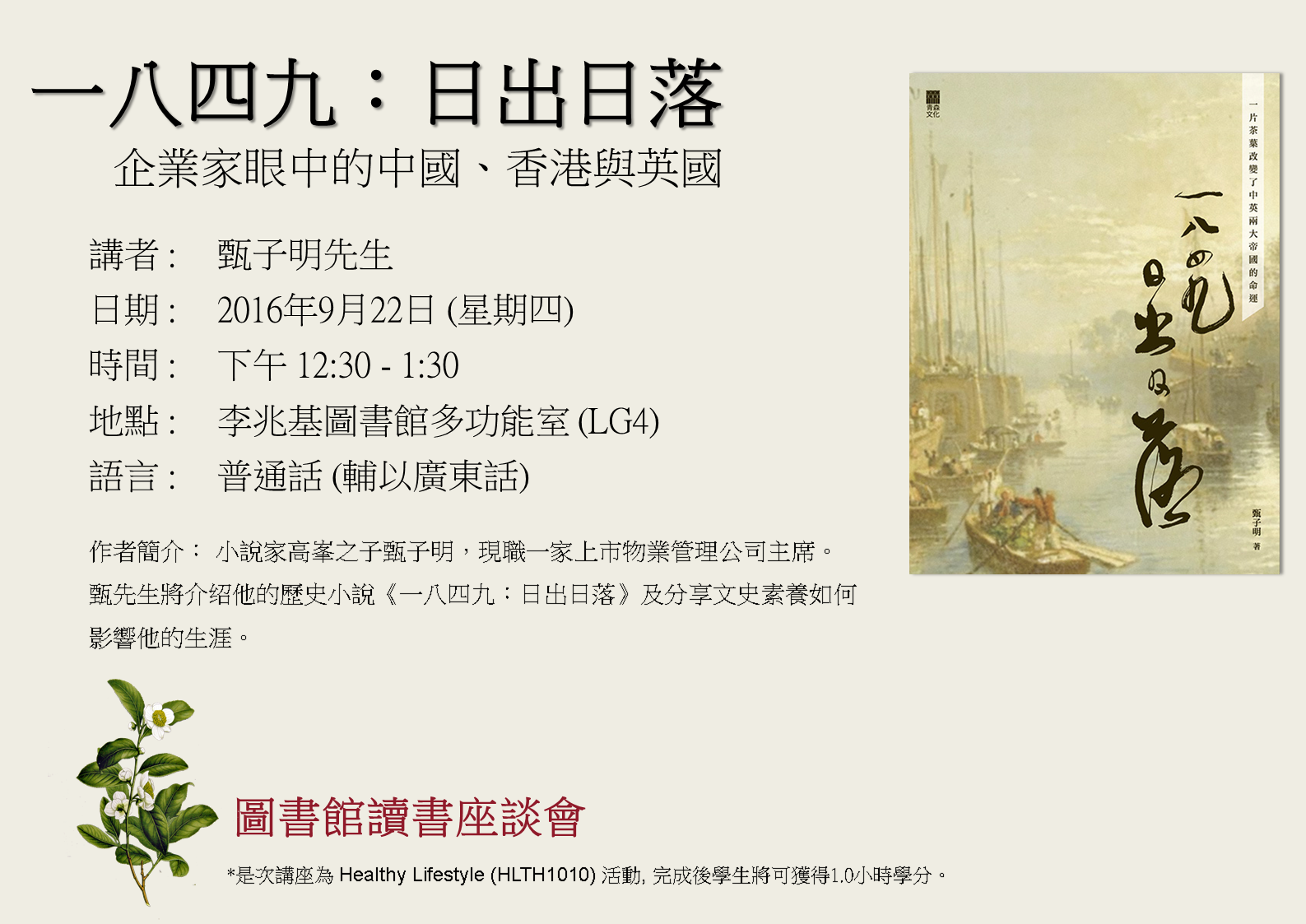小說 《一八四九:日出日落》,是講者甄子明的新作,他以非常視角講述了一段中、港、英的重要歷史。