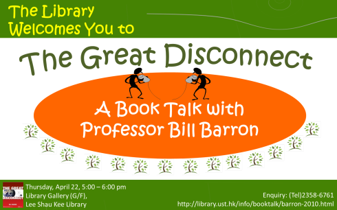 Before joining the newly created Division of the Enviroment, Prof. Barron was a member of HKUSTs Institute for the Environment, which published his book The Great Disconnect in 2009.