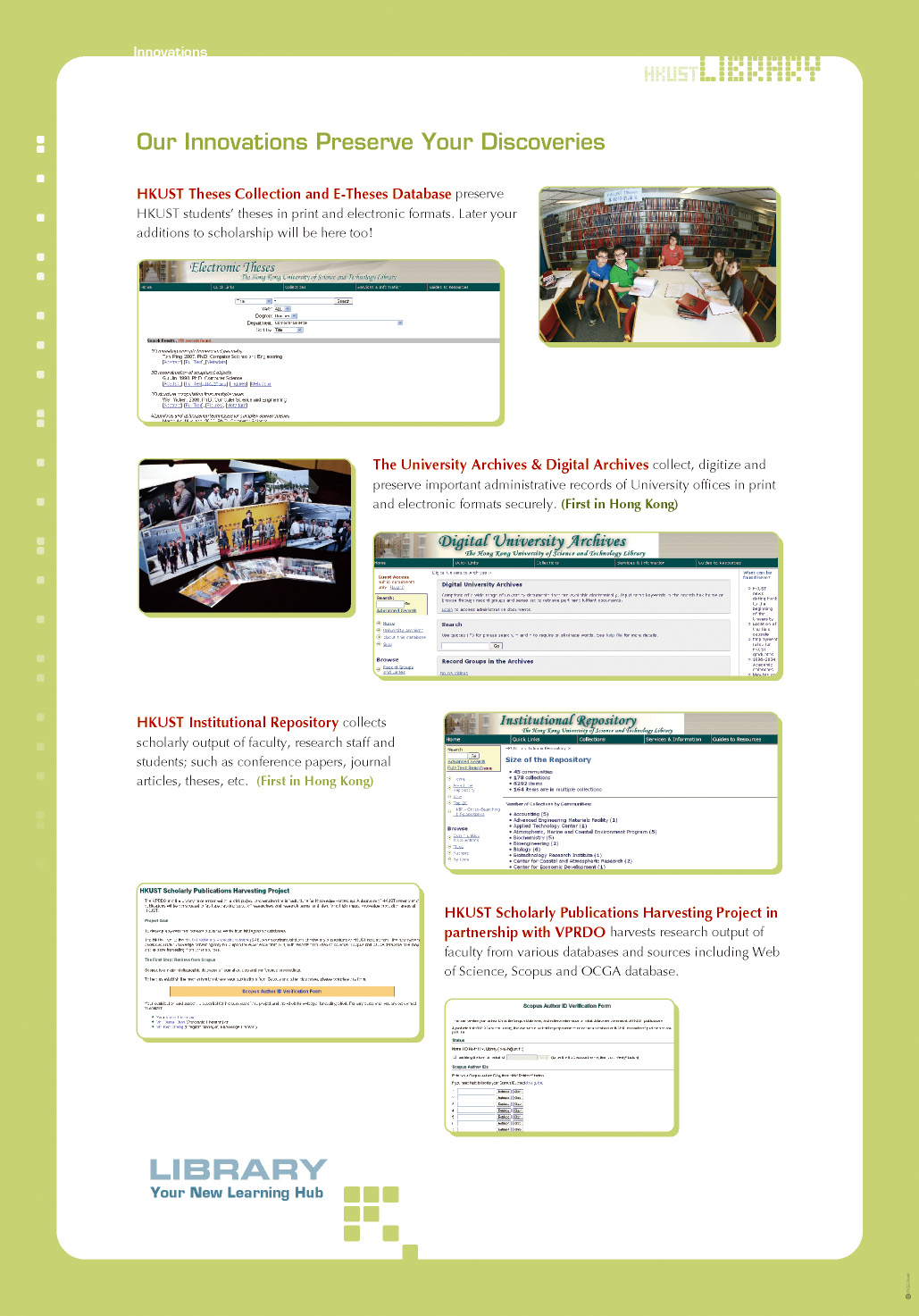 The Library actively collects, preserves, and disseminates the HKUST Community’s scholarly output through: