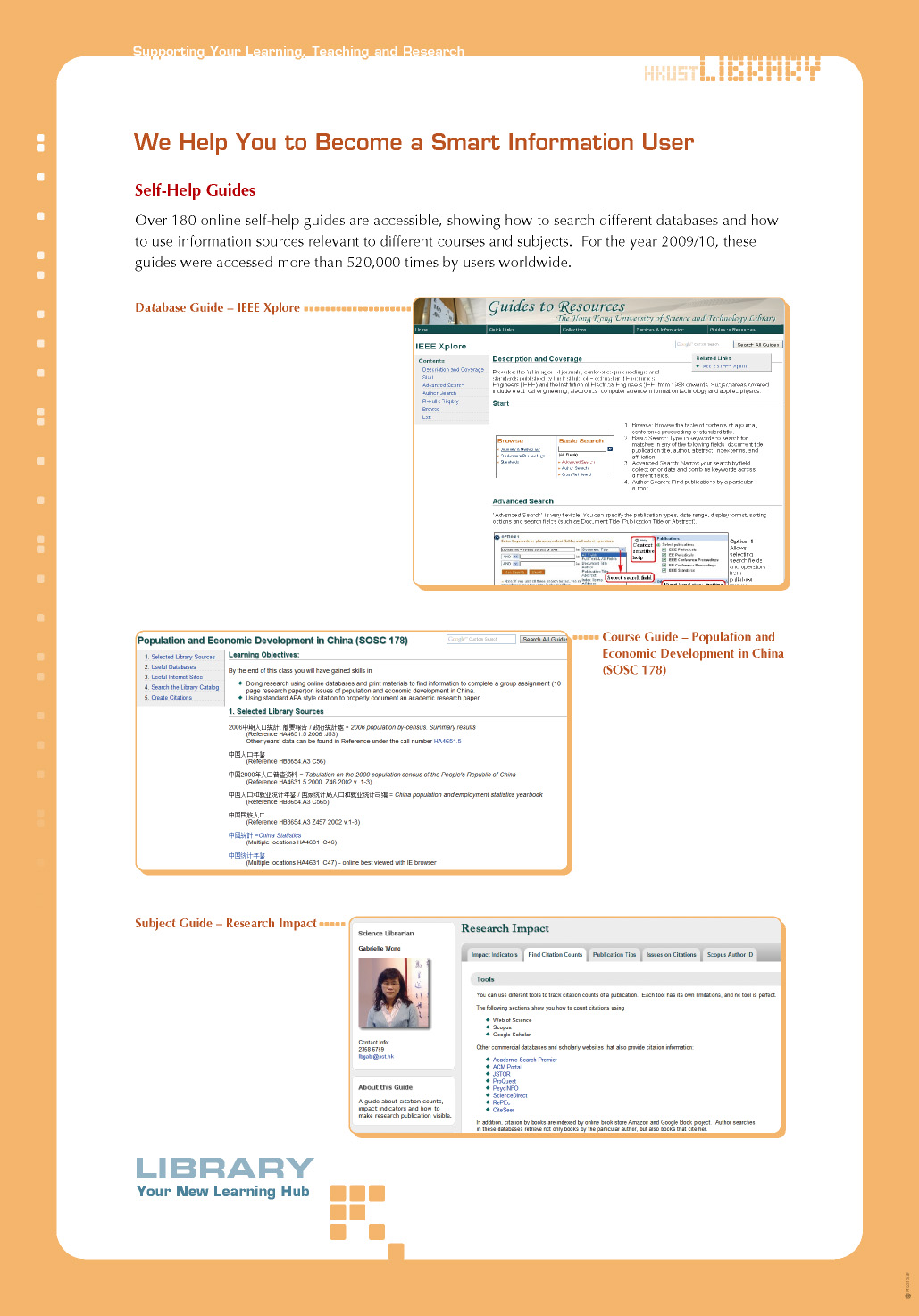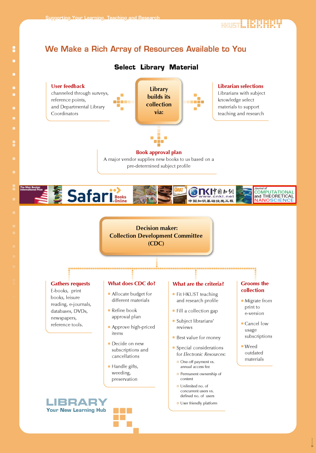 HKUST Library’s primary mandate is to support your learning, teaching, and research. To this end, Library staff members build and maintain an extensive array of material in multiple formats, covering many different subjects.