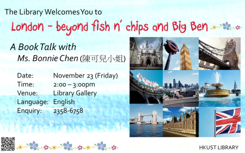 What do you think London represents? Or, what do you think represents London? «英倫話語», published earlier this year, paints a picture of the city unlike an ordinary guidebook. The author, Miss Bonnie Chen, put together memories of her life as a student when she pursued a master degree at the London School of Economics and Political Science in 2009-10. She brings an unusual perspective to appreciating Londons rich culture and history, which she will share at the BookTalk. She will also provide some tips on how to explore London beyond the typical popular tourist spots.