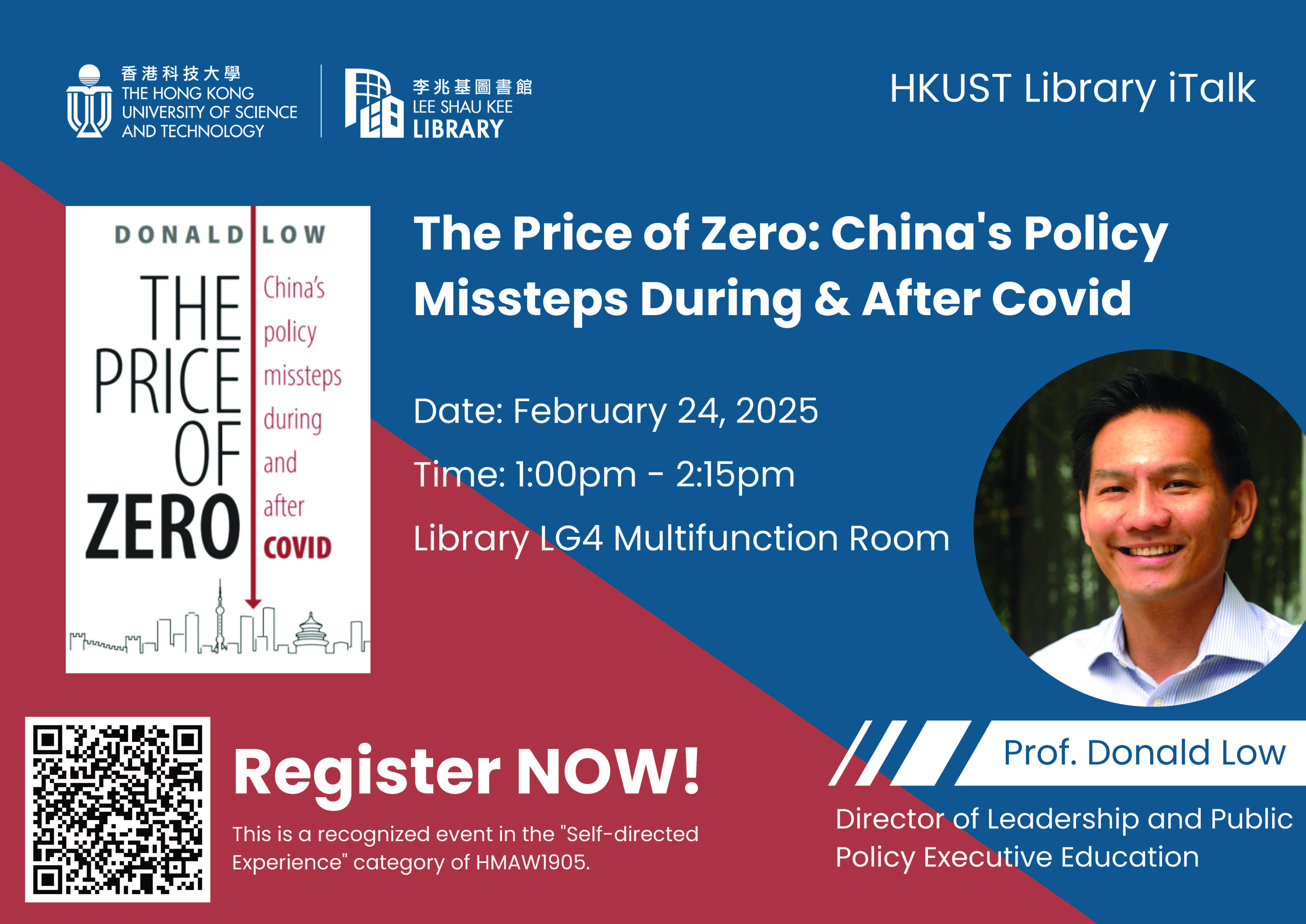 In this talk, Prof. Donald Low will examine the causes and economic consequences of the zero-Covid policy that the Chinese authorities pursued for much of the pandemic, as covered in his latest book, The Price of Zero: Chinas Policy Missteps During & After Covid (Call no. RA644.C67 L69 2024).