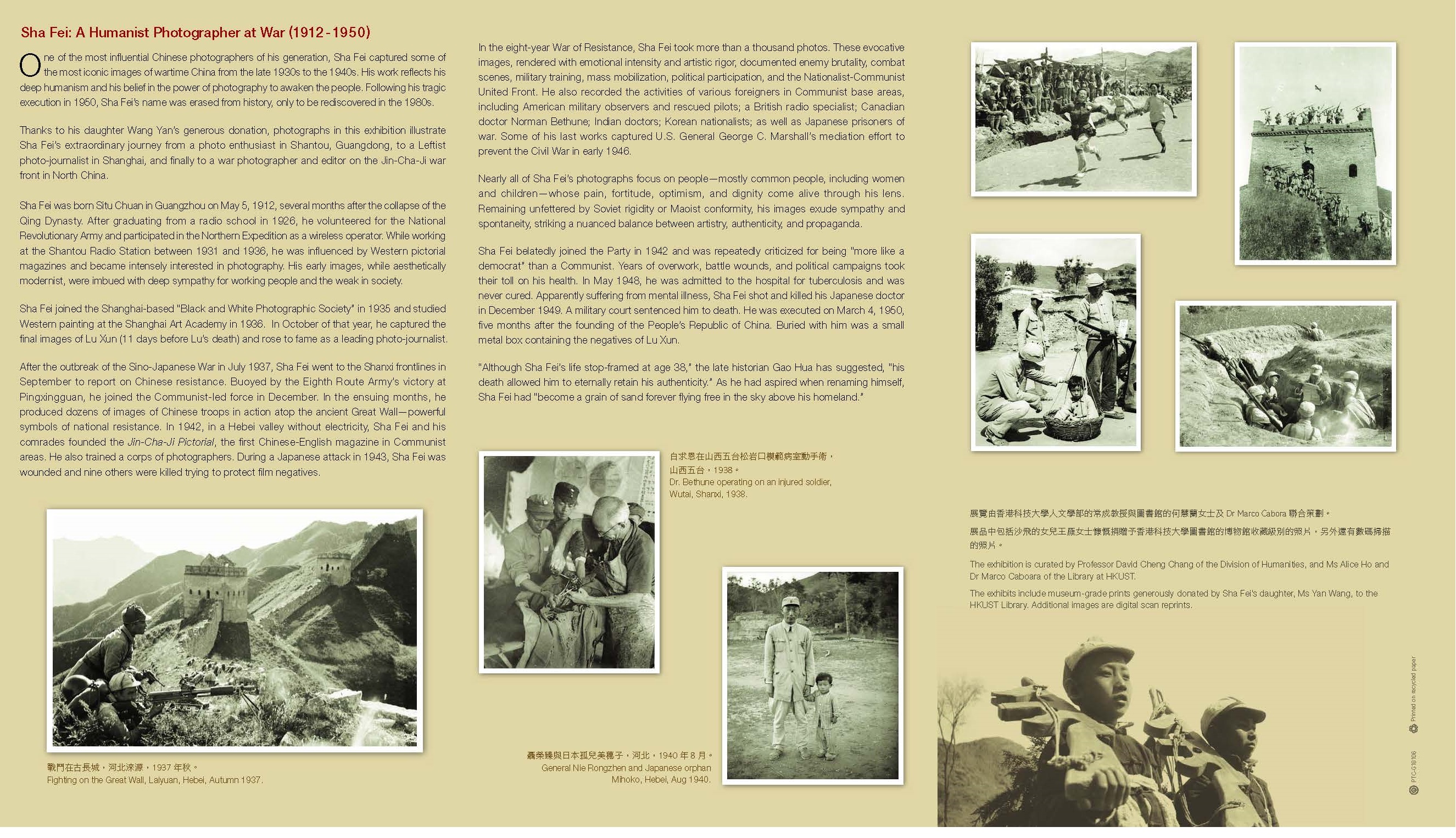 •    Art is never truly exempt from history. Sha Fei’s documentation of this era in the form of photographs (especially that ordinary life and the everyday) absolutely bridges a gap formed by the passing of time. He creates understanding for the contemporary viewer through representation and photography as a medium is one of the most accurate in achieving that task. Sha Fei’s works – and all war photography – ensure that history is never lost and it demands us to reflect and remember. All in all, a great exhibition on part of the HKUST Library.