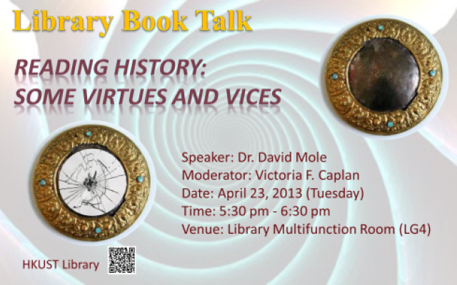 About the TalkDavid Mole, HKUSTs Associate Provost (Teaching and Learning) spoke about some histories that he has enjoyed, and his reflections on them. The thread of his discussion was a quote from Francis Bacons The Advancement of Learning on why people seek knowledge:"For men have entered into a desire of learning and knowledge, Sometimes upon a natural curiosity and inquisitive appetite; Sometimes to entertain their minds with variety and delight; Sometimes for ornament and reputation; And sometimes to enable them to victory of wit and contradiction; And most times for lucre and profession; And seldom sincerely to give a true account of their gift of reason to the benefit and use of men: As if there were sought in knowledge a couch whereupon to rest a searching and restless spirit; Or a terrace for a wandering and variable mind to walk up and down with a fair prospect; Or a tower of state, for a proud mind to raise itself upon; Or a fort or commanding ground, for strife and contention; Or a shop, for profit or sale; And not a rich storehouse for the glory of the Creator and the relief of mans estate."Admitting to the vice of often seeking "a couch" or a "terrace"; and trying to attain the virtue of a "rich storehouse" to the delight and enjoyment of the audience, he spoke about and read from a number of books, the library copies listed below. Video of the talk: Reading history: some virtues and vices (D16.2 .M65 2013) Return to Dragon Mountain: Memories of a Late Ming Man / by Jonathan Spence Reformation: Europes House Divided / Diarmaid MacCulloch After Tamerlane : the global history of empire since 1405 / by John DarwinThe corruption of angels : the great inquisition of 1245-1246 / Mark Gregory PeggThe Reformation / Diarmaid MacCulloch Waterloo : Napoleons last gamble/ Andrew RobertsThe coming of the Third Reich / Richard J. EvansOther books recommended are:The Third Reich in power, 1933-1939 / Richard J. EvansThe Third Reich at war / Richard J. EvansA history of histories : epics, chronicles, romances and inquiries from Herodotus and Thucydides to the twentieth century / John Burrow About the SpeakerDr. David Mole received his BA from Cambridge University before moving to Canada for Post-graduate study. There, he earned a Masters degree from the University of British Columbia and a PhD at the University of Toronto.After teaching at a number of universities in Canada and working as an economist for the Ontario government, he moved to Hong Kong in 1989.David joined HKUST in 2005, where his main role has been to support the development of undergraduate education, especially the implementation of the four-year degree. In addition to a keen interest in sport and physical fitness, David has a life-long addiction to the pleasures and rewards of reading.For enquiry, please contact Victoria Caplan at 2358-6756.