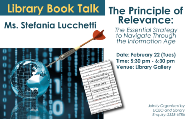 About the TalkHow often do you find yourself suffering from information overload?Most of us are constantly flooded with emails, text messages and phone calls. This seemingly endless swirl of digital information exchange can make us feel as though we have lost control of our time.Today, our competitive edge is no longer solely based on whether information is available, but rather on our ability to navigate through this flood of high speed data: to select, access, use, and respond to that which is most relevant.The Internet, and the digital information overload we experience is reshaping our lives and our brains. We need to grow and change with the medium, to make it a tool of empowerment rather than a form of distraction.In this talk, Stefania discussed the problem of information over-load, what led her to write the book, and some of the strategies in The Principle of Relevance. Powerpoint PresentationThe principle of relevance: the essential strategy to navigate through the information age [streaming video] About the Speaker Stefania Lucchetti (www.stefanialucchetti.com), is an accredited mediator with the Hong Kong International Arbitration Center, and an attorney who is qualified in 3 jurisdictions. She practiced corporate law for over 10 years in Europe and Asia focusing on telecoms, IT, media, and internet industries; and assisted internet pioneers such as Altavista and Yahoo in the early days of their penetration in Europe.Having traveled extensively around the world throughout her life, she now lives in Hong Kong with her husband and baby boy. She is enthusiastic and passionate, working to blend the intuition and insights from her life experiences with the knowledge and logical thinking she developed in the corporate world.Stefania is known and admired as a master organizer of her time and as a relentless adventurer of the mind. Other than managing her career and family, she cultivates a passion for dance (she has been a semi-professional dancer and modern dance teacher). She has practiced meditation and yoga for several years; and she loves to travel and learn. Since childhood, she has had a personal policy of learning 3 new skills every year, whether physical or intellectual. Stefania is an avid reader of books on any topic that interests her.For enquiry, please contact Victoria Caplan at 2358-6786.