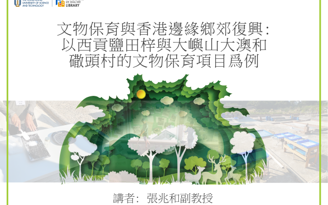 講座簡介是次講座以西貢區的鹽田梓天主教客家村為例子,闡述原來已經離散的村民,在特殊條件之下回到荒廢的小島上發展文物保育,與外界合作聯結,推動社區復興。講者並會以他近期在大嶼山大澳和䃟頭村推行的文物保育項目進行對比,探討邊緣鄉郊復興的問題和策略。鄉郊社區的活化,為有興趣參與的市民和香港科技大學學生提供對另類的生活空間和社會關係,以致身份認同建構的寶貴知識和經驗。講座進行期間將被錄影及拍照出席此座談會的同學可獲CORE1905課程中"Behavioral Foundations of University Education: Habits, Mindsets, and Wellness"的1.0小時學習時數。同學須於入場及離場時出示學生證以作記錄名額有限,請各位報名留座講者: 張兆和副教授張兆和副教授多年來在香港科技大學人文學部從事人類學教學和研究工作。研究範圍主要是中國西南地區及香港族群社區歷史文化和身份認同。
