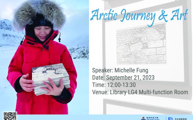 Description of talk: In fall 2022, Michelle Fung (https://www.michelleksfung.com/) went to the world’s northernmost town, Longyearbyen, to participate in the Arctic Circle, a 17-day residency program where international artists, filmmakers and musicians lived and worked on-board a ship. For fourteen days, the group sailed off the uninhabited international territory of Svalbard, an Arctic archipelago just 10 degrees latitude from the North Pole. They made daily landings to work on their projects. They rode inflatable boats called zodiaces, watched icebergs, hiked, and thus observed and researched the Arctic land as well as the sea.During her residency, Michelle created woodcuts for Northlandia, one of the five imaginary countries in her ongoing 2084 world-building project. She then an extra ten days in Longyearbyen, for more inspiration and artistic work.In this talk, she will share on her personal Arctic journey and on the Northlandia Arctic Woodcuts she created there. She will also share her scholarly and journalistic insights on climate change and the delicate Arctic landscape.Registration link: https://lbcube.hkust.edu.hk/ce/index.php/event/9676/About the Speaker Michelle Fung (馮捲雪): An interdisciplinary artist, Michelle Fung’s lifelong oeuvre revolves around a grand dystopian world-building narrative set in year 2084. Her works have been presented extensively in international museums, galleries and university exhibitions and film festivals. A friend of HKUST, her solo exhibition Plastic, Plastic, Every Where was held at HKUST in 2019 (https://www.michelleksfung.com/hkust-2019). She holds a BFA, The University of British Columbia, Canada and MVA, Hong Kong Baptist University, Hong Kong.