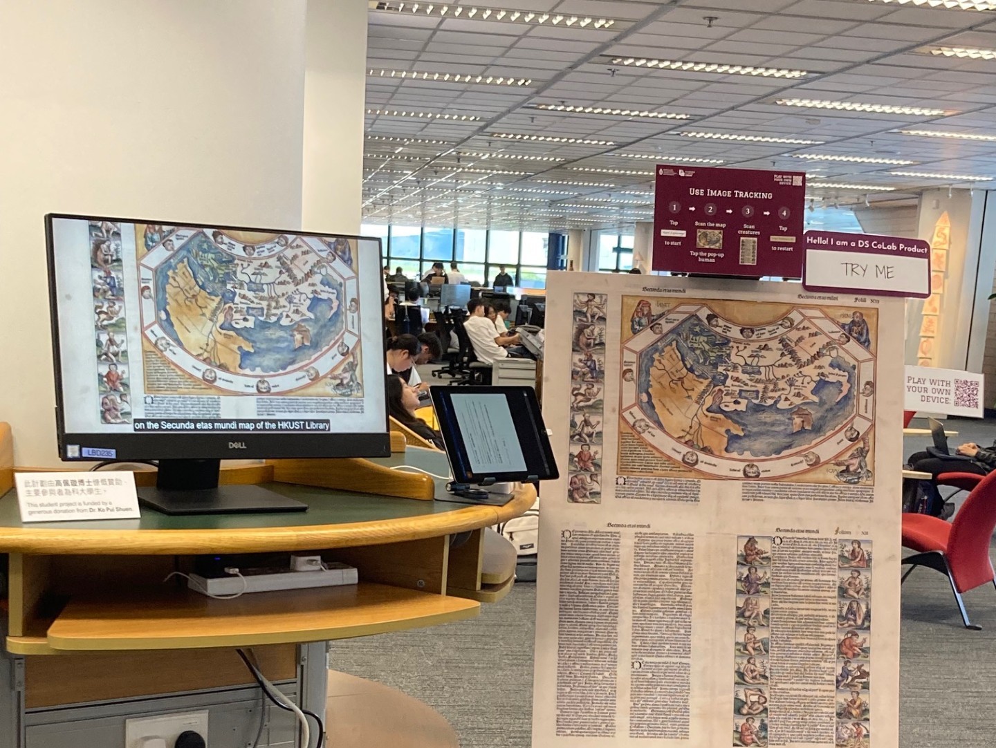 What's Up on the Ground Floor this September? You may have noticed something unusual just inside the G/F gates of the Library. What is it? A display of a digital humanities project for you to interact (play) with. What's the story? In spring semester 2025, 5 UG students worked with library staff as one of the DS CoLab projects to bring a 520 year-old map from the Library's collection to life. They used augmented reality (AR) technology to create an engaging and interactive visual way to explore the cultures and histories that went into the creation of "Secunda etas mundi", The Second Stage of the World, from Hartmann Schedel's Nuremberg Chronicle (1493). This map is a fascinating piece from the library’s Special Collections. It shows “The Second Age of the World” (out of 6), the stage between Noah’s Flood and the birth of Abraham. These ages were a periodization of world history (common in Christian Europe for about 1,000 years), first formulated by the North African Christian theologian, Augustine of Hippo (354-430 CE). A remarkable example of late medieval cartography, it combines knowledge from the Greek geographer Claudius Ptolemy with visual references from religion and mythology from Europe and the lands surrounding the Mediterranean.