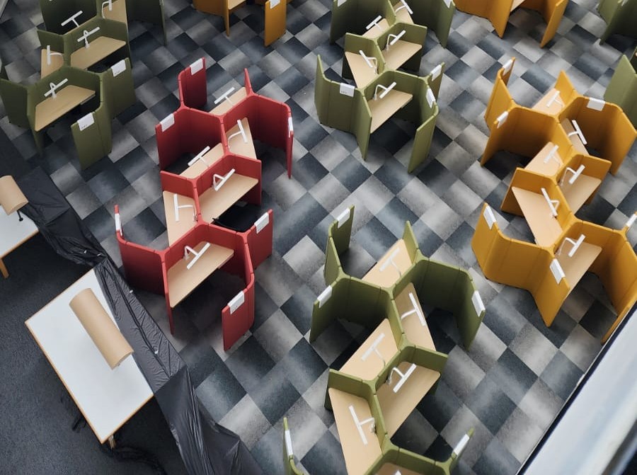 You have probably already seen the new carrels on LG4. We went with a colourful mix in a 'hexagon' or honeycomb arrangement. We changed the carpet too, giving a more engaging and dramatic visual effect. Why this change? Previously, that area held several large reading tables and a collection of sofas. For the past couple of years we have been receiving complaints about noise travelling from there to higher floors, especially LG3 and G/F. And the recent LibQUAL user survey showed a strong student demand for more individual study carrels. And the sofas were really being underutilised, and sometimes used for sleeping instead of studying. So we killed two birds with one stone, as the western saying goes. Groups of students discussing were switched to individual study options meeting user demands for quiet individual study space.