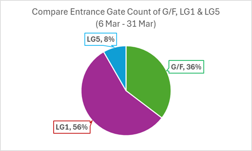 After we opened the new entrance at LG5 early March, you can go in and out the Library at three different levels: Main entrance at G/F by the Atrium LG1, the Learning Commons LG5 Which one do you use more often? You may find that a particular entrance fits better into your locus in campus. But apart from that, each entrance in fact has its own character! LG5 The new entrance provides a convenient option for students at residential halls. We collected gate counts in March, and learned that 84% of the entrance traffic was UG students – the UG proportion is higher than the other two. It is interesting that there were about 16,000 counts at the entrance, but only 9,000 at the exit. I wonder why … tell me if you know! At the LG5 library space, you can find 3 bookable study rooms and over 100 study seats – and you can use these library facilities without passing the card-access gate! Please follow the library rules here, do not bring in food even though it's so close to eateries at LG5 and LG7. One more note for you is that, if you want to borrow books, make sure you do that at the Circulation Counter on G/F before going down there – the LG5 exit has no check-out service.
