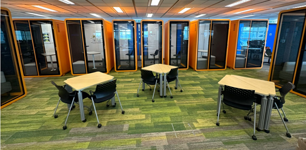 While you were gone, we moved all the microforms down to LG4 and repurposed that space on LG1 for student study. Please welcome the new Study Pods - they're orange, and we're loving them! Nine pods have been installed, meeting different needs: 3 Solo Pods - 1-person pods for quiet study, online interviews, remote class attendance, and whatever else you might need them for 4 Duo Pods - 2-person pods for working with your project partner 2 Quad Pods - 4-person pods offering quiet space for small groups to work Remember - when you only need a place for online programs, use a small pod instead of a larger group study room - always be considerate of other students! All pods can be reserved using the Library's Room Booking System, just like study rooms. Every pod comes with seating, work surface, good lighting and ventilation, power/USB sockets, and a fair amount of quiet. Edward Spodick Associate Director of Library Services lbspodic@ust.hk