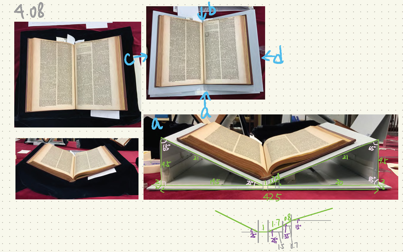 While visiting the map exhibition in the Library, you may not notice what is underneath the rare books on display. Guess what, it is more than just a stand! These rare books from our Special Collections have various ages; some older ones were published in the early 1600s, so they are almost 400 year old! To display them without hurting them is a huge challenge. Each book needs a custom-made support, called a cradle, that lets it stay open at the particular page and angle in the most comfortable way. In May 2023, library colleagues Fiona, Lu, and June worked together as the "cradle team" to tackle the challenge. For each book, they had to take these steps: 1. Determine the angle: they first had to figure out with the curators which page was to be shown; then they determined the best angle to let the book stay open. This was crucial to ensure that the book spine wouldn't be damaged while still allowing visitors to read the text and illustrations. 2.