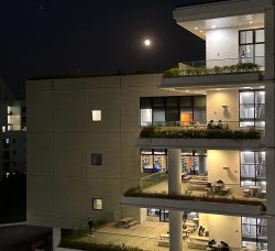 Ada took this poetic photo a little after 6pm. According to the moon phase calendar of the Hong Kong Observatory, full moon that day was at 5:16pm, not long before the photo was taken.  No wonder the moonlight was so amazing! Ada also shared other moon photos with me; and I also like this one with the Moon lurking behind the Library building.