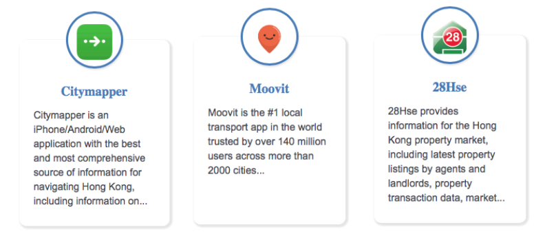 The following are some examples of creative web and mobile applications developed by the Government and the community using datasets in the Portal.